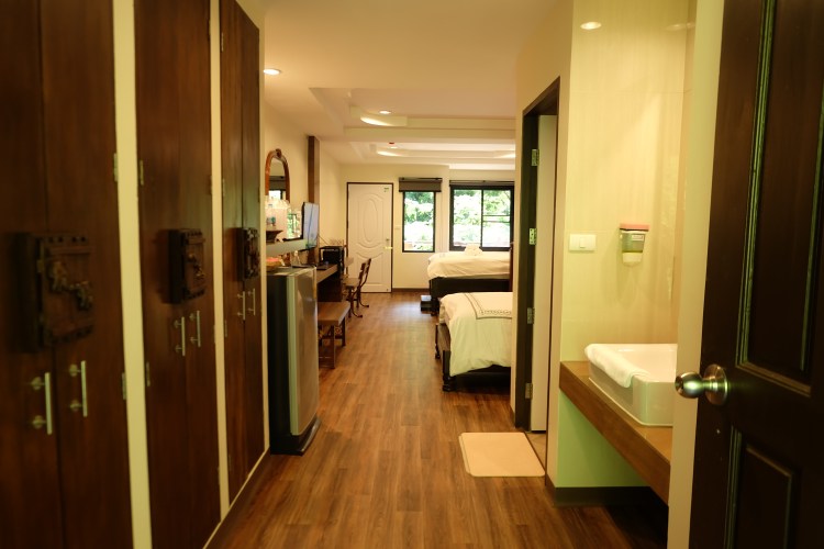 Surrounded by greenery, this three-storey building fulfil many travelers’ dreams. The view from the balcony offers both Namtok Sarika Water from atop, as well as the swimming pool. The view from the rooftop in the morning is mesmerizing especially in rainy season when fog visits us often. Night sky is clear in the winter, perfect for star watching.